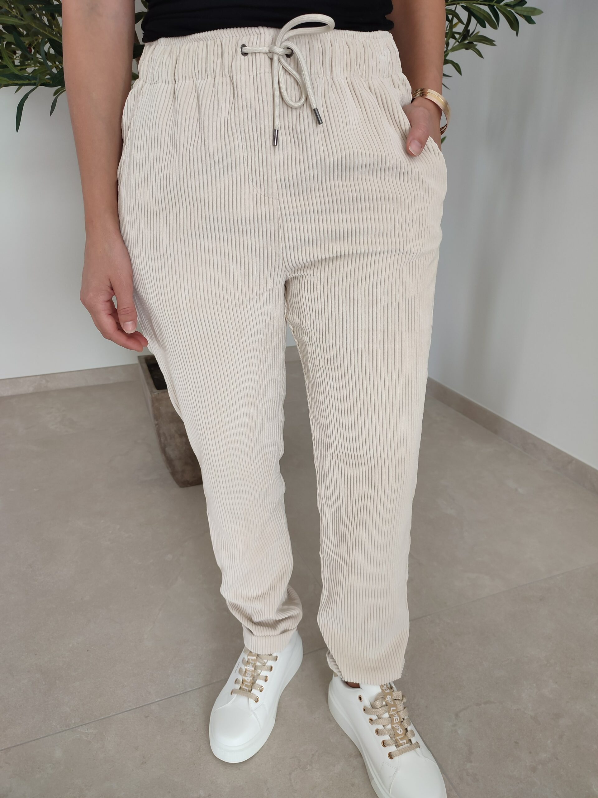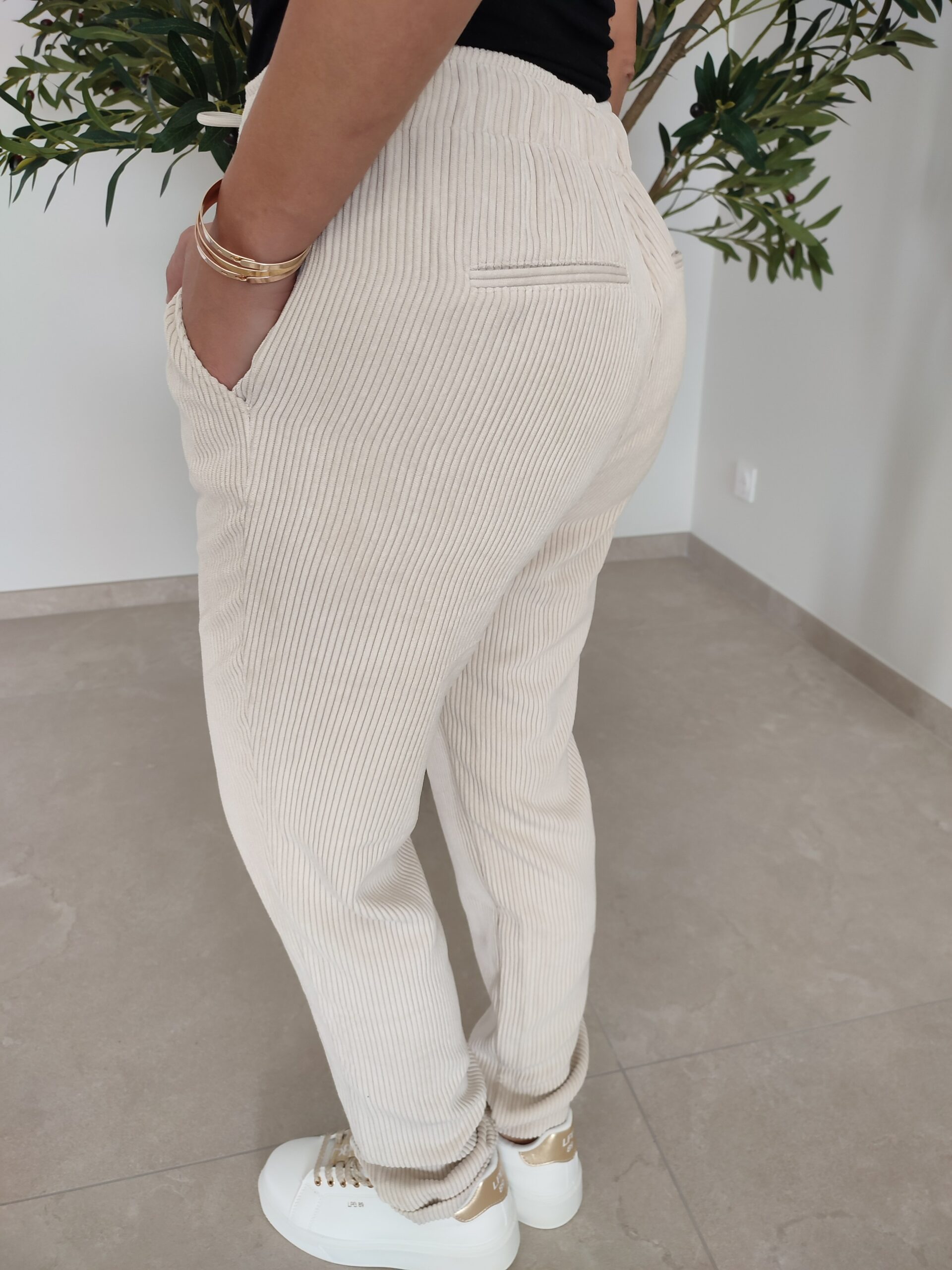 Modèle en velours côtelé.